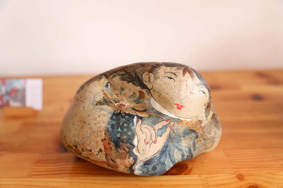 自2016年起,魯婷開始用黃河石畫的形式,講述母親河的故事。2018年,魯婷在西行客棧建立了自己的工作室,向社會各界免費開放,用黃河石彩繪的方式,為北疆文化注入新的思想和內涵。