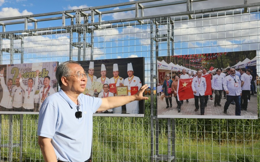 7月28日,第14屆《食色世界》攝影大展,在四子王旗格根塔拉草原旅游中心開展。圖為本次攝影展策展人、中國攝影家協會會員、中國人像攝影學會副會長、內蒙古攝影家協會名譽主席郎立興正在介紹展品。