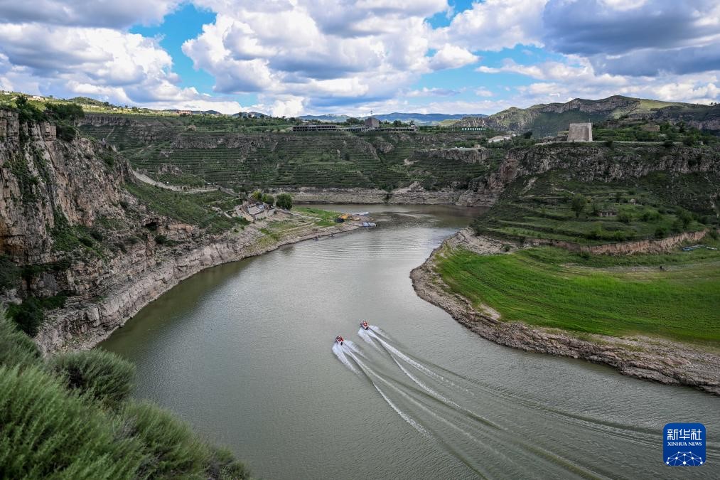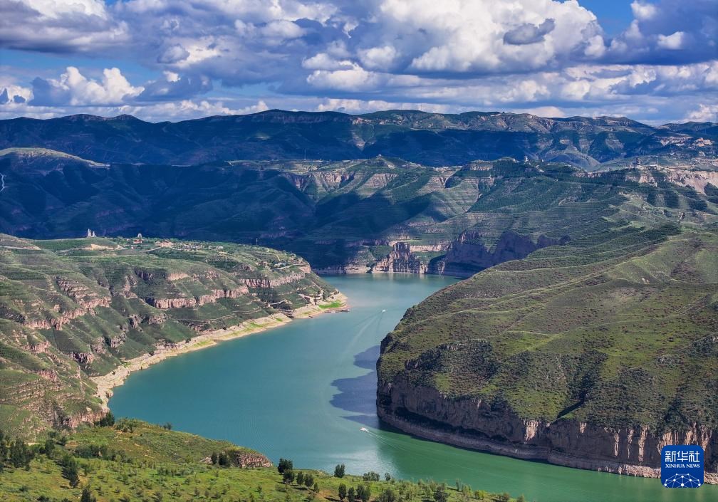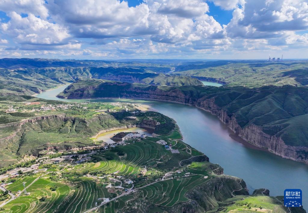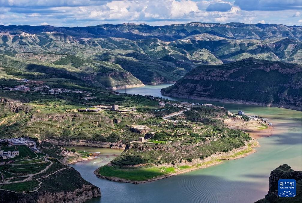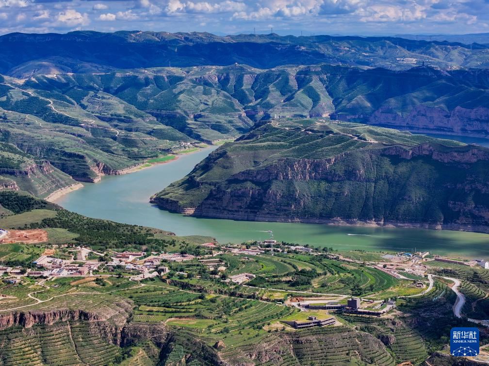 ??這是8月12日拍攝的黃河老牛灣風(fēng)光(無人機照片)。