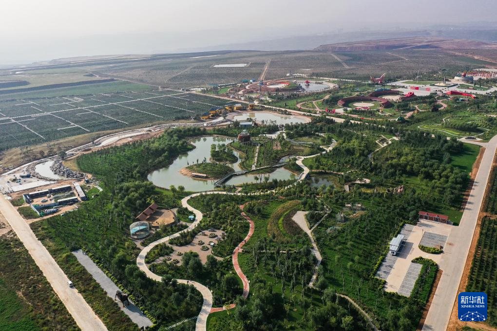 ??在位于內蒙古鄂爾多斯市準格爾旗的國家能源集團準能集團,煤礦復墾區(qū)樹木蔥蘢,已成為礦山生態(tài)旅游區(qū)(無人機照片,9月19日攝)。