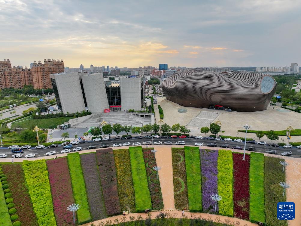 ??這是9月19日拍攝的鄂爾多斯市圖書館與博物院(無人機照片)。