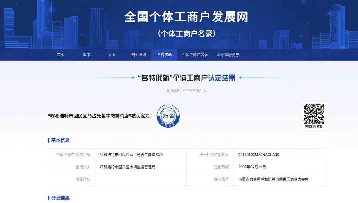 去年,呼和浩特市市場監(jiān)管局等16個市級部門聯合制定實施《呼和浩特市個體工商戶分型分類實施方案(試行)》,開展“名特優(yōu)新”個體工商戶申報和推薦工作。通過線上線下雙渠道,利用個體工商戶服務月活動,向廣大個體工商戶普及申報政策和流程,鼓勵符合條件的個體工商戶參與申報。通過材料審核、走訪核實、征求意見、評審認定、信息公示等程序,經區(qū)縣、市、自治區(qū)逐級復核上報,呼和浩特市首批認定全國“名特優(yōu)新”的27戶個體工商戶已完成入庫(其中“知名”15戶、“特色”10戶、“優(yōu)質”2戶),被認定的個體工商戶可享受由國家、自治區(qū)、市出臺的相關扶持培育政策。