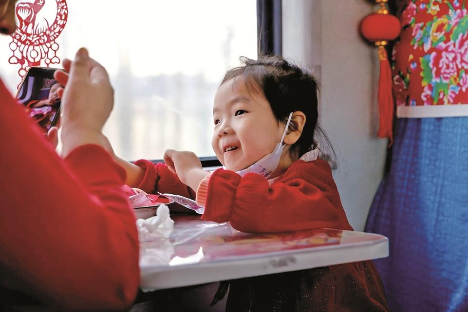 一張張貼在車窗上的“非遺”窗花剪紙,一條條紅黃藍大花座椅枕巾,一節(jié)節(jié)以藍天白云為底色的車廂頂棚,一首首悅耳的草原歌曲和悠揚的馬頭琴聲……這個冬季,一列列由內蒙古興安盟烏蘭浩特往返于阿爾山百年老車站的“歌游內蒙古 夢幻阿爾山”冰雪主題列車成為人們爭相體驗的旅游產品。
