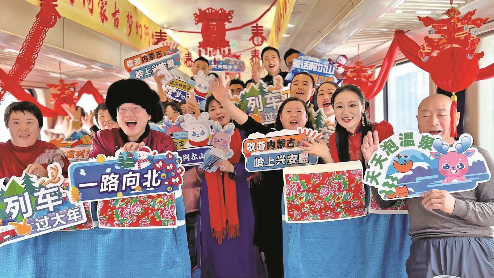 2025年2月27日,《中國旅游報》第5版刊發(fā)題為《興安盟冰雪主題列車——刮起“最炫民族風”》的文章,報道了一列列由內蒙古興安盟烏蘭浩特往返于阿爾山百年老車站的“歌游內蒙古 夢幻阿爾山”冰雪主題列車成為人們爭相體驗的旅游產品。