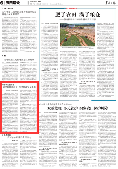 2025年4月3日,《農(nóng)民日?qǐng)?bào)》第6版刊發(fā)題為《內(nèi)蒙古扎魯特旗:加快鹽堿地改造 筑牢糧食安全根基》的文章,報(bào)道了近年來,內(nèi)蒙古自治區(qū)通遼市扎魯特旗圍繞“向鹽堿地要糧,讓荒原變良田”的目標(biāo),加大鹽堿地治理力度,不斷挖掘鹽堿地開發(fā)利用價(jià)值,把工程措施、生物措施和化學(xué)改良措施有機(jī)結(jié)合起來,因地制宜、綜合治理,不斷拓展農(nóng)業(yè)耕地資源,激活鹽堿地“潛在糧倉”資源,實(shí)現(xiàn)鹽堿地資源的系統(tǒng)改良和高效利用。