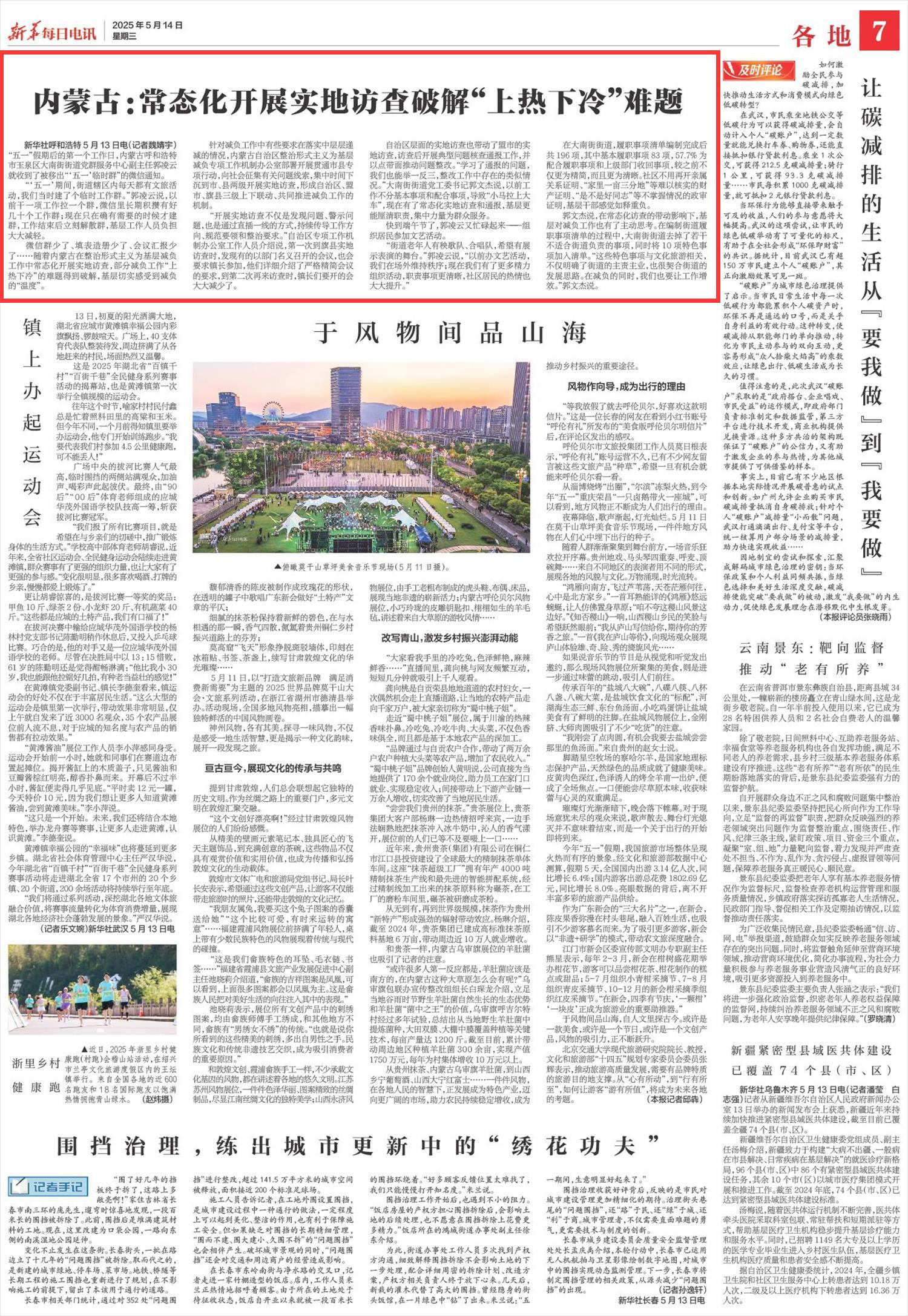 2025年5月14日《新華每日電訊》第7版刊發(fā)了《內蒙古:常態(tài)化開展實地訪查破解“上熱下冷”難題》的文章,報道了內蒙古自治區(qū)整治形式主義為基層減負專項工作機制辦公室部署開展貫通市縣專項行動,向社會征集有關問題線索,集中時間下沉到市、縣兩級開展實地訪查,形成自治區(qū)、盟市、旗縣三級上下聯(lián)動、共同推進減負工作的機制。