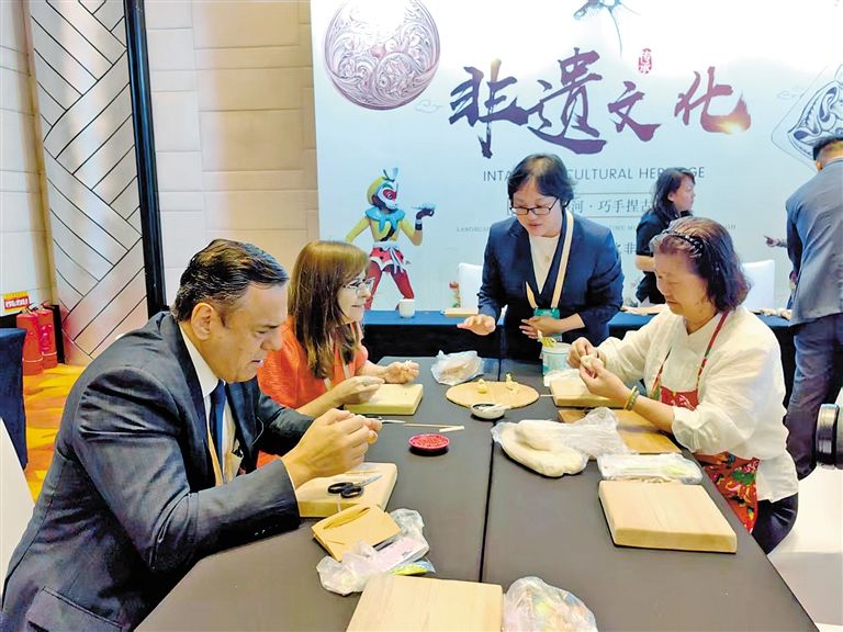 外賓在第五屆中蒙博覽會(huì)2025年國(guó)家向北開(kāi)放重要橋頭堡智庫(kù)論壇非遺文化展區(qū)體驗(yàn)。 草原云·內(nèi)蒙古新聞網(wǎng)記者 李永桃 攝