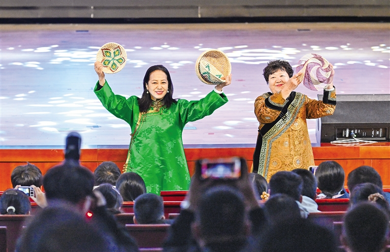 對(duì)接會(huì)設(shè)在北京一零一中學(xué)圓明園校區(qū),現(xiàn)場(chǎng),內(nèi)蒙古特色非遺、歌舞表演異彩紛呈,鮮活展現(xiàn)絢爛多彩的北疆文化。北京交通大學(xué)現(xiàn)代旅游研究學(xué)院院長(zhǎng)張輝作“研學(xué)旅游高質(zhì)量發(fā)展”主旨演講。自治區(qū)文旅廳發(fā)布了2025年研學(xué)旅游新品,重磅推出深度融合內(nèi)蒙古的自然地理、歷史文化、科學(xué)技術(shù)與民族風(fēng)情的4條主線、20條支線的研學(xué)旅行路線,還系統(tǒng)推出一批具有地域特色與文化內(nèi)涵的精品主題研學(xué)旅游產(chǎn)品,全方位展示了內(nèi)蒙古研學(xué)旅游的獨(dú)特魅力和發(fā)展?jié)摿?。?nèi)蒙古藝術(shù)劇院烏蘭恰特藝術(shù)培訓(xùn)中心推介了北疆文化藝術(shù)研學(xué)產(chǎn)品;中國(guó)鐵路呼和浩特局發(fā)布京蒙研學(xué)旅游專列計(jì)劃,并進(jìn)行京蒙兩地研學(xué)公司客源互通簽約儀式;中國(guó)旅游協(xié)會(huì)研學(xué)旅行分會(huì)與內(nèi)蒙古自治區(qū)旅游協(xié)會(huì)進(jìn)行合作簽約?;顒?dòng)還設(shè)置“少年那達(dá)慕”互動(dòng)體驗(yàn),吸引不少青少年現(xiàn)場(chǎng)打卡體驗(yàn)北疆文化?!皟?nèi)蒙古是一個(gè)自然與人文交織的遼闊課堂,期待走進(jìn)內(nèi)蒙古,用腳步丈量、用心靈感受內(nèi)蒙古?!北本┙逃龑W(xué)院豐臺(tái)分院附屬學(xué)校學(xué)生高晟恩說。