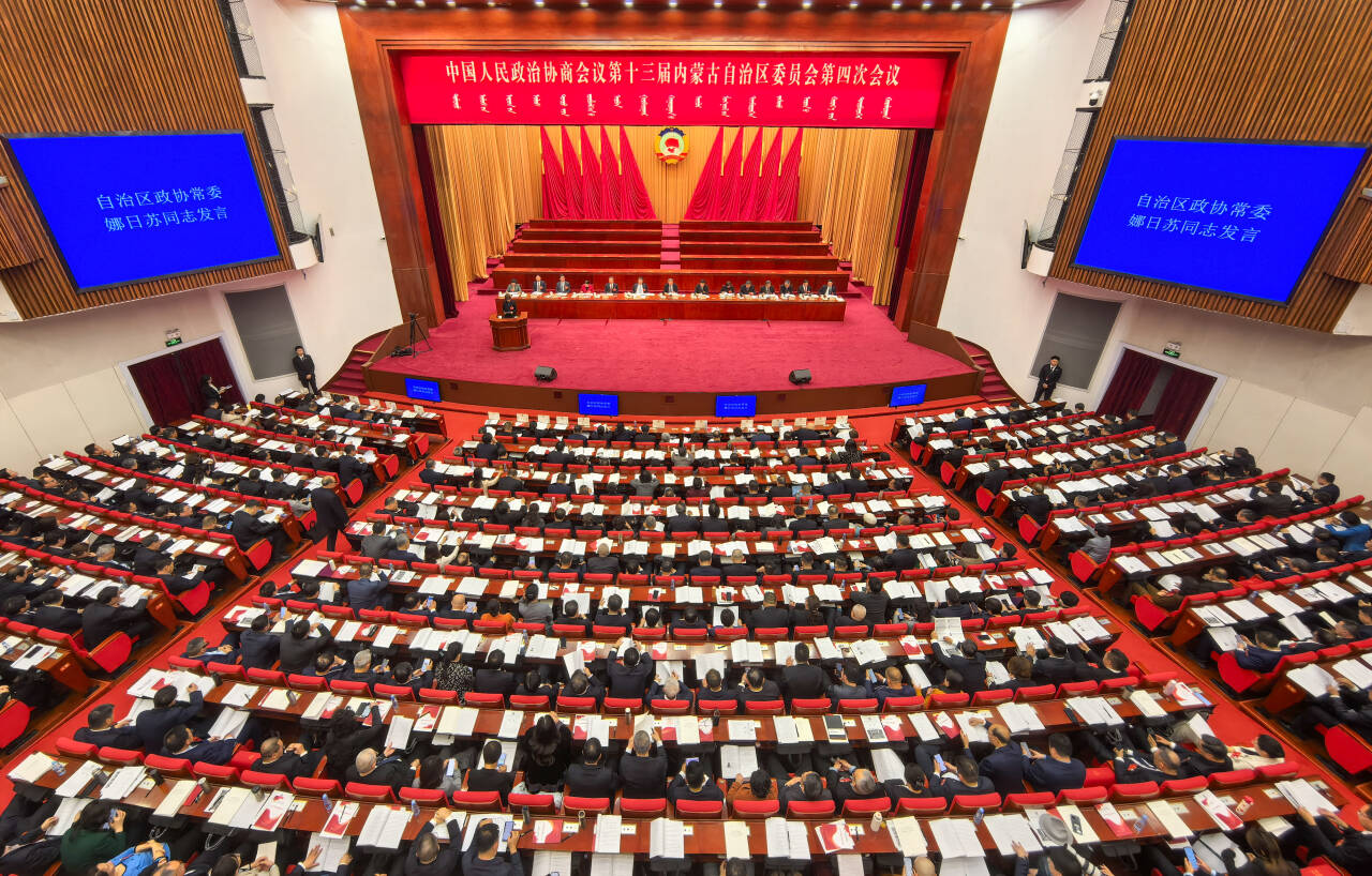 2月4日下午,自治區(qū)政協(xié)十三屆四次會(huì)議舉行第二次全體會(huì)議。草原云記者 孟和朝魯 攝