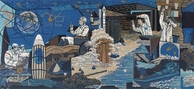 “大國(guó)重器”亮點(diǎn)紛呈,脫貧攻堅(jiān)成就舉世矚目,這些時(shí)代新象都在展覽中得到體現(xiàn)。例如,張輝君油畫(huà)《蛟龍入?!?、沙永匯版畫(huà)《北斗》等作品,折射出我國(guó)科技自主創(chuàng)新能力不斷提升。孔紫中國(guó)畫(huà)《戈壁灘》和劉云中國(guó)畫(huà)《美麗鄉(xiāng)村》,分別借助植樹(shù)造林的人物群像塑造、新農(nóng)村景觀的宏闊描繪,展現(xiàn)了彪炳史冊(cè)的人間奇跡。