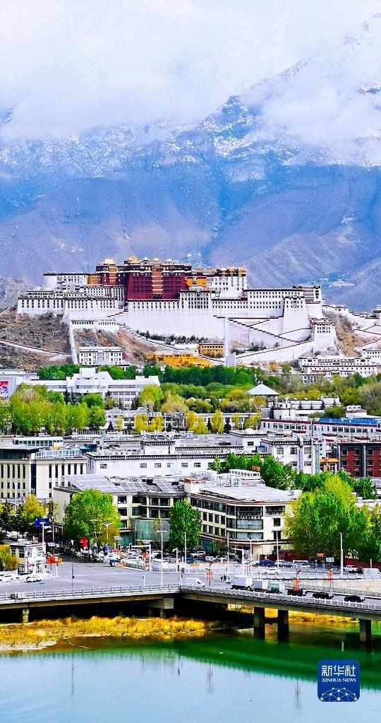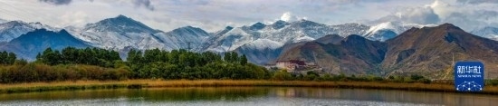 這是在拉魯濕地拍攝的拉薩風(fēng)光,蔥蘢的樹木點(diǎn)綴在城市中,與山色相映成趣(5月12日攝)。