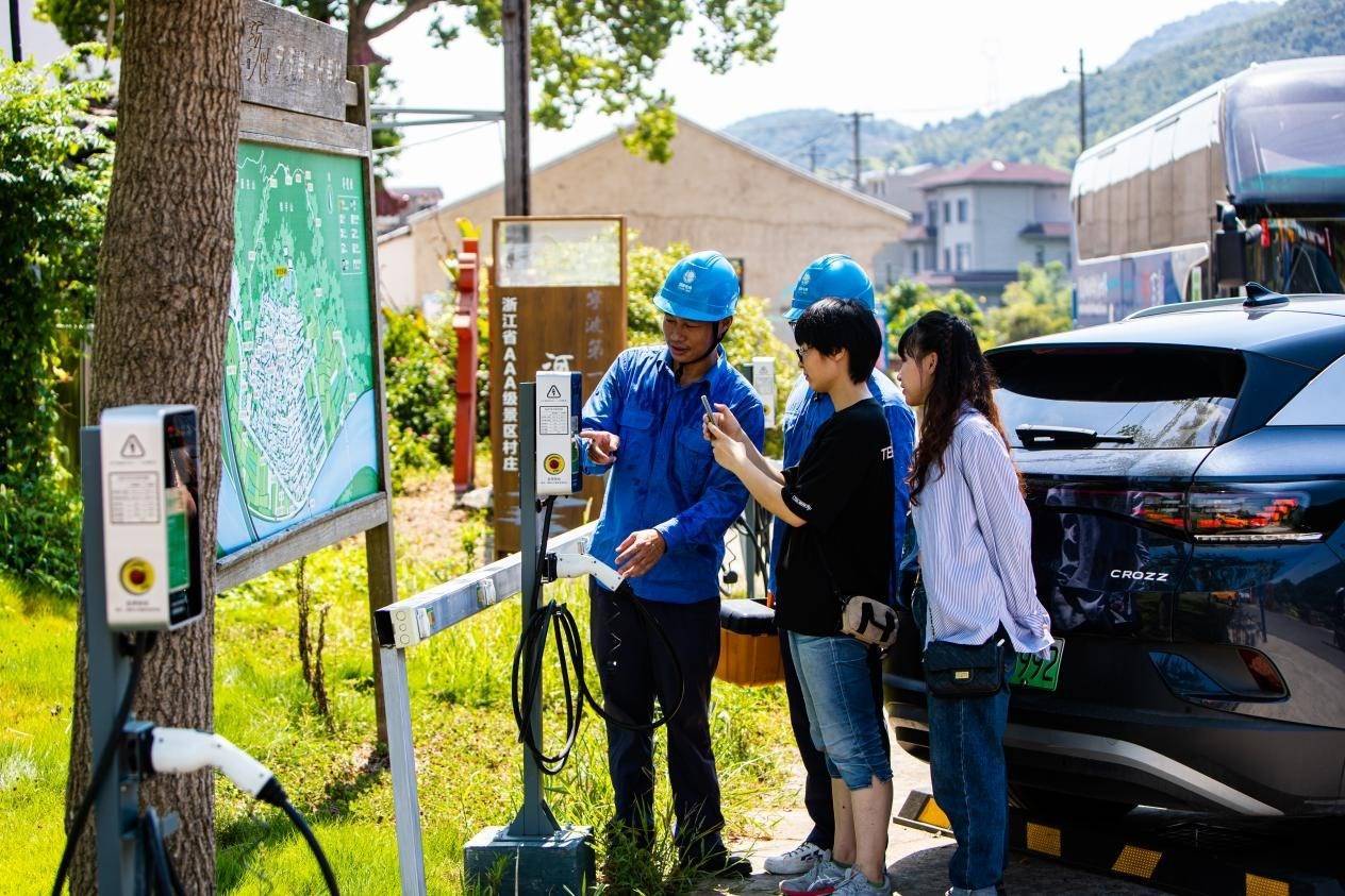 國(guó)家電網(wǎng)浙江寧波供電公司員工為電動(dòng)車主提供現(xiàn)場(chǎng)充電指導(dǎo),引導(dǎo)往來(lái)車輛有序充電,為綠色旅行提供全方位服務(wù)。胡云杰/攝