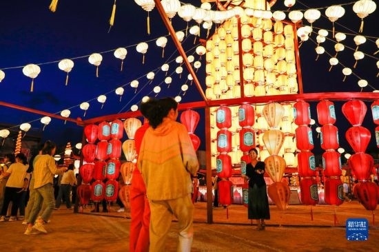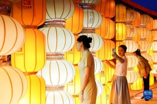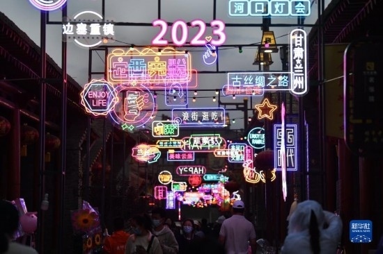 當(dāng)日,位于甘肅省蘭州市西固區(qū)黃河岸邊的河口古鎮(zhèn)“黃河燈展”正式亮燈。此次燈展以“河口耀千年·絲路映萬(wàn)古”為主題,各類燈組交相輝映,吸引眾多游客前來(lái)游覽。此次燈展將持續(xù)到10月底。燈展活動(dòng)期間,河口古鎮(zhèn)還將舉辦盛裝巡游等活動(dòng),為游客帶來(lái)豐富的參觀體驗(yàn)。