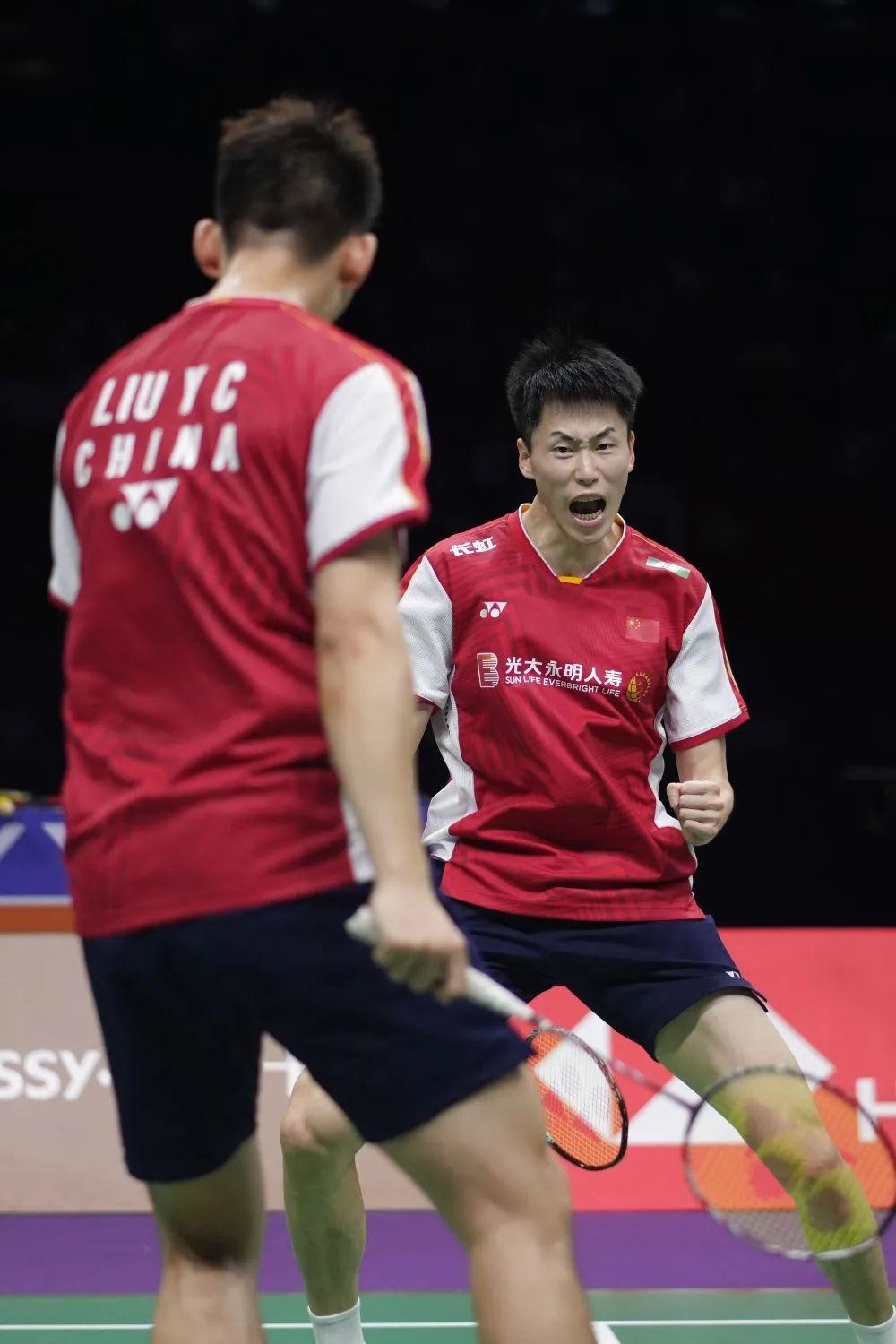 以保木卓朗/小林優(yōu)吾遺憾、懊惱的表情為背景,劉雨辰越過邊界擋板在場內狂奔,與場邊的教練擊掌相慶?!澳孟卤荣悾瓿闪宋覀兊娜蝿?,沒給男雙丟臉,在主場也沒給球迷們丟臉!”劉雨辰賽后說。