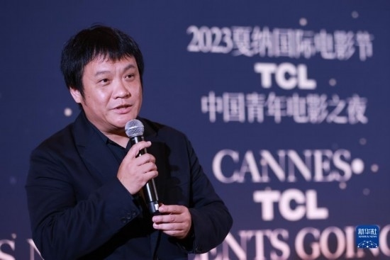 5月19日,在法國(guó)戛納,中國(guó)青年電影全球推廣計(jì)劃推廣大使、導(dǎo)演寧浩在“中國(guó)青年電影之夜”活動(dòng)上致辭。