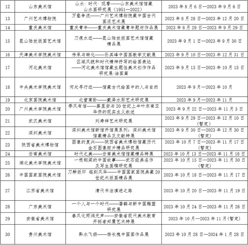 附:2023年全國美術(shù)館館藏精品展出季活動目錄(按展覽時間排序)