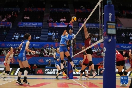 當(dāng)日,在日本名古屋舉行的2023世界女排聯(lián)賽分站賽中,中國隊以3比0戰(zhàn)勝德國隊。
