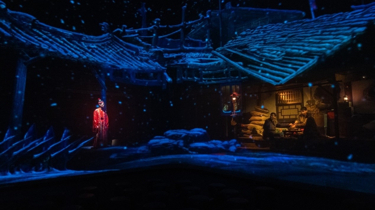 只有紅樓夢(mèng)·戲劇幻城還將“亦真亦假、榫卯拼接、虛實(shí)留白、輪回轉(zhuǎn)世”等中國(guó)式哲思與美學(xué)理念,運(yùn)用到戲劇創(chuàng)作與景觀設(shè)計(jì)中。從幻城入口處16扇風(fēng)格迥異的“中國(guó)門(mén)”開(kāi)始,到幻城中隨處可見(jiàn)的“留白”、“古建”與“方塊字”,在如迷宮幻境一般的建筑空間中,創(chuàng)新式的用最中國(guó)的方式講述中國(guó)的故事。
