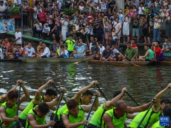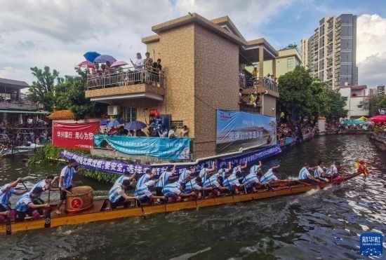 6月22日,觀眾在佛山疊滘東勝村觀看龍船漂移賽。