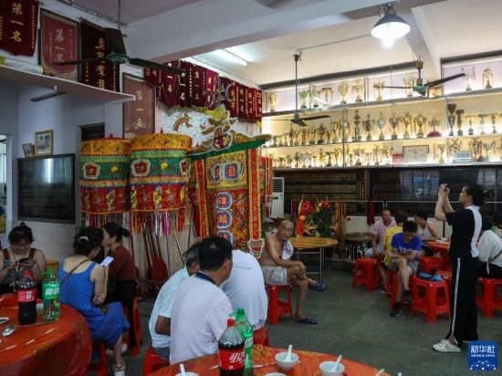6月22日,佛山疊滘潭頭村文化站擺滿了龍船賽獎杯和錦旗。