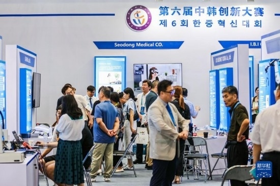 7月28日,參會者在博覽會上觀看中韓創(chuàng)新大賽成果展示。