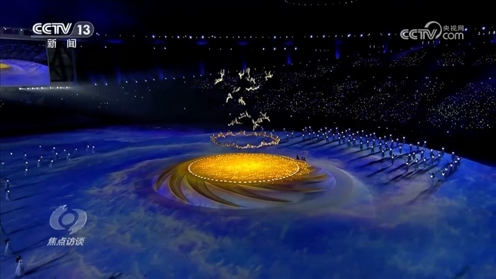 陳維亞:“我們把四川蜀錦概念融入到入場儀式里面,在視頻上繡娘們開始不斷繡著,運(yùn)動(dòng)員劃出彩色的線路,寓意著運(yùn)動(dòng)員們錦繡前程擺在他們面前。我們要表達(dá)的最主要的東西和以往都不一樣,就是青春、陽光、活力、夢(mèng)想?!?/p>