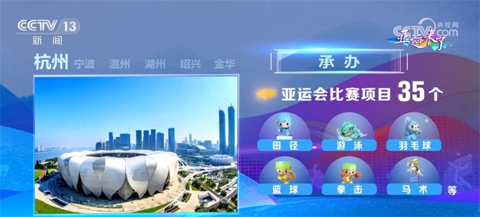 杭州設(shè)42個競賽場館、主亞運村及2個亞運分村,承辦田徑、游泳、羽毛球、籃球、拳擊、馬術(shù)等35個亞運會比賽項目和22個亞殘運會比賽項目。