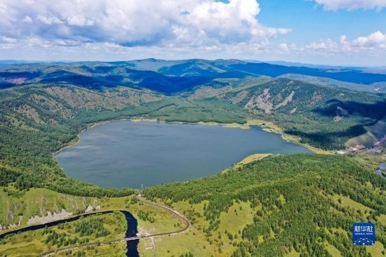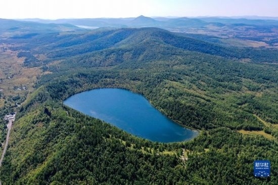 這是8月31日拍攝的阿爾山國(guó)家森林公園阿爾山天池景色(無人機(jī)照片)。