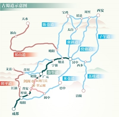“范雎相秦,棧道千里,通于蜀漢?!弊鳛楣糯B接長(zhǎng)安與蜀地的“陸地官道”,古蜀道蜿蜒于秦嶺、大巴山,是串聯(lián)關(guān)中平原與四川盆地的交通要道。