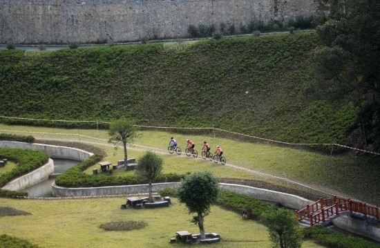 10月28日,參賽選手在比賽中。當(dāng)日,第一屆全國(guó)學(xué)生(青年)運(yùn)動(dòng)會(huì)男子山地自行車(chē)越野賽在廣西南丹縣舉行,貴陽(yáng)市代表隊(duì)選手王勝以1小時(shí)4分36秒奪得冠軍,遵義市代表隊(duì)選手文靈浩以1小時(shí)4分38秒獲得亞軍,成都市代表隊(duì)選手解道超以1小時(shí)5分12秒獲得季軍。新華社記者 陸波岸 攝