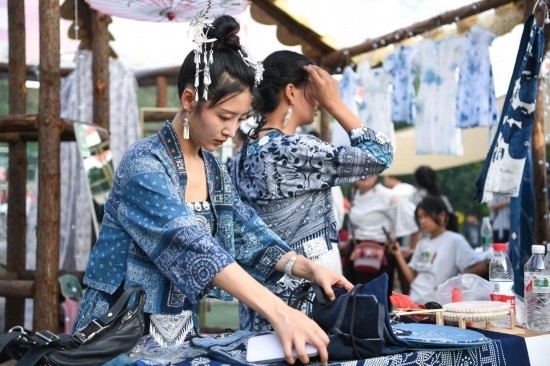 榕江縣古州文化旅游投資開發(fā)(集團)有限責任公司總經理孫國秀說,“村超”的火爆帶火了相關產業(yè)?!皟H全縣開發(fā)的藍染‘村超’文創(chuàng)產品就有200多款,包括T恤、布袋、球隊隊標等。”