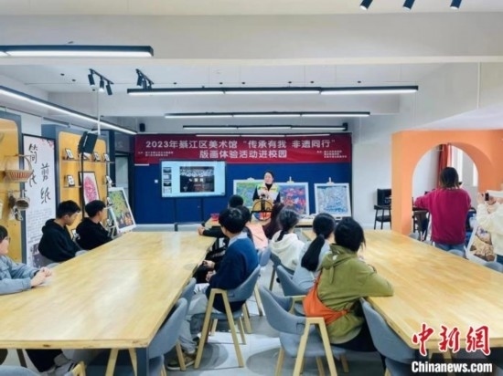 圖為綦江農(nóng)民版畫走進(jìn)校園活動(dòng)現(xiàn)場(chǎng)。 綦江農(nóng)民版畫院 供圖