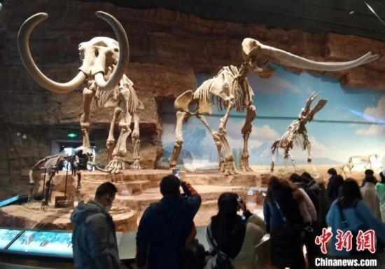 1月3日,中國古動(dòng)物館(保定自然博物館)展出的草原猛犸象化石骨架。呂子豪 攝