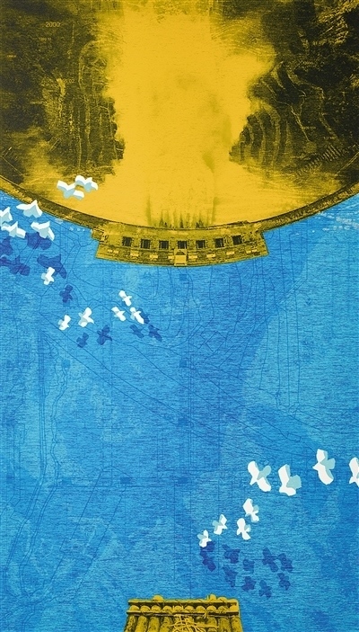 新時(shí)代長江氣象萬千。在重慶市文化和旅游發(fā)展委員會、重慶市文學(xué)藝術(shù)界聯(lián)合會等單位主辦的“2022同源·同向——長江流域十三省市自治區(qū)美術(shù)作品邀請展”上,龐茂琨油畫《輝耀九龍》、徐君華粉畫《浦江之夢》等作品,以充滿詩意的語言展現(xiàn)了日新月異的城鄉(xiāng)面貌與豐富多彩的現(xiàn)實(shí)生活。近年來,一批重大工程的實(shí)施,為百姓生活帶來便利,使長江流域涌動活力。一些美術(shù)工作者充分發(fā)揮視覺藝術(shù)的力量感,反映長江流域建設(shè)成就。比如,賀思恩版畫《蓄勢——破譯雅礱密碼》依托絲網(wǎng)版畫色彩表現(xiàn)力較強(qiáng)的藝術(shù)特色,以俯瞰視角,展現(xiàn)了長江流域水電站的時(shí)代風(fēng)采。