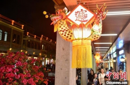 圖為2月20日晚,泉州中山路騎樓兩側(cè),花燈流光溢彩,美不勝收。 中新網(wǎng)記者 張斌 攝