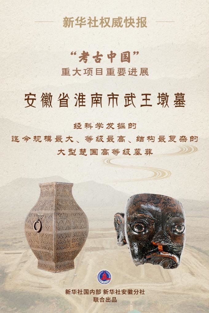 國(guó)家文物局4月16日在安徽省淮南市舉行“考古中國(guó)”重大項(xiàng)目重要進(jìn)展工作會(huì),發(fā)布安徽省淮南市武王墩墓考古新發(fā)現(xiàn)。