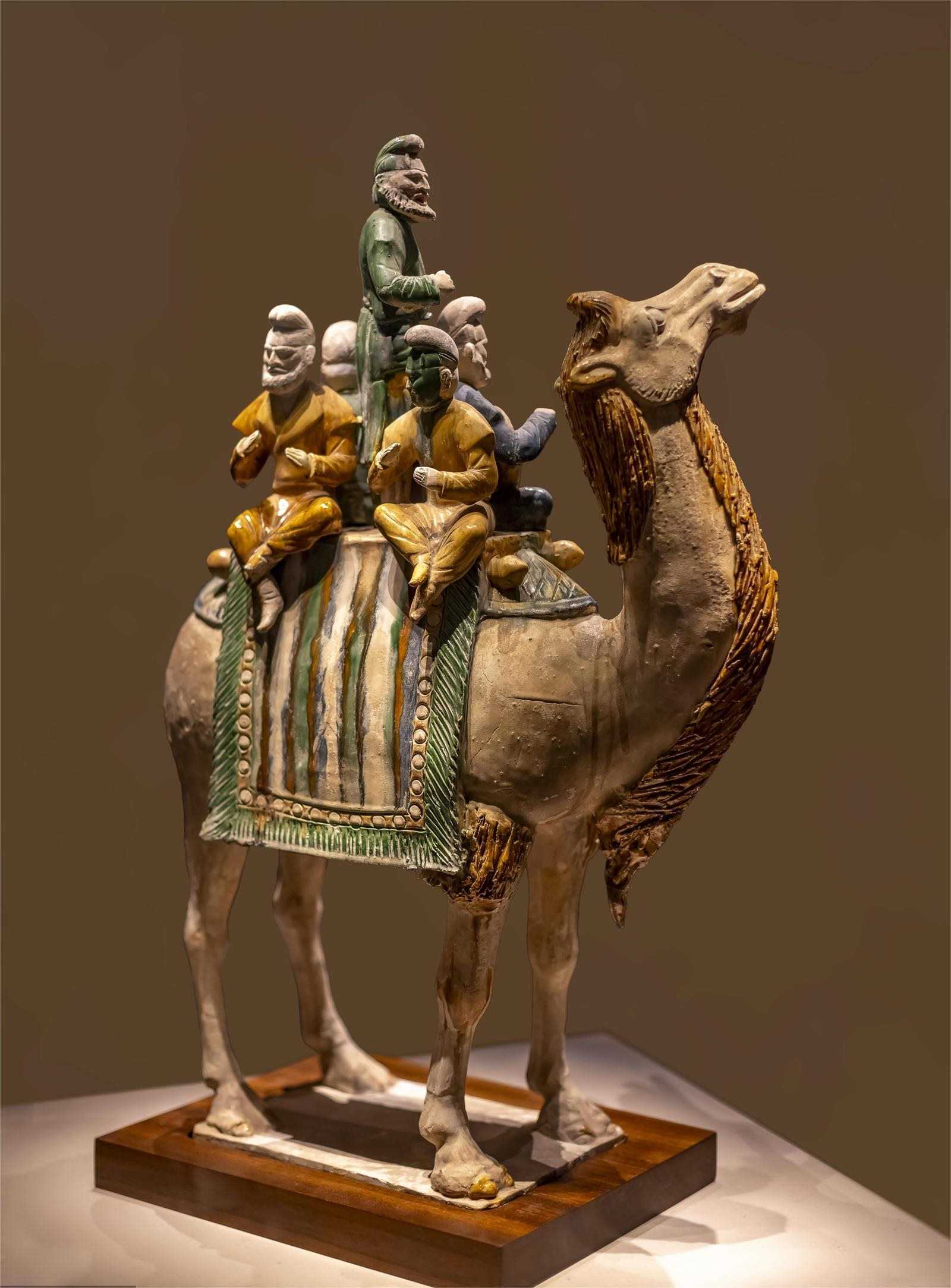 中國(guó)國(guó)家博物館的唐三彩釉陶載樂(lè)駱駝巧妙地夸張了人與駝的比例,造型優(yōu)美生動(dòng),釉色鮮明潤(rùn)澤,代表了唐三彩的最高水平,更重要的是,它見證了絲綢之路上的文明互鑒。