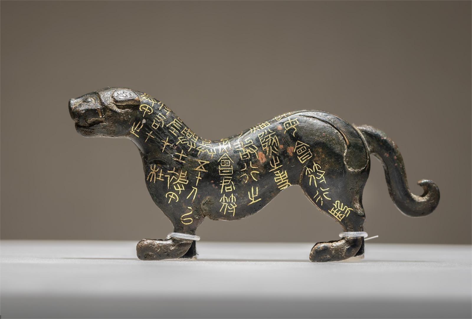 2300年前的戰(zhàn)國(guó)錯(cuò)金杜虎符,讓人穿越歷史,感受戰(zhàn)國(guó)時(shí)期沙場(chǎng)秋點(diǎn)兵的磅礴氣勢(shì)。陜西歷史博物館藏的錯(cuò)金杜虎符是一只霸氣虎,作行走狀,昂首,尾巴蜷曲?;⒎峡讨骸氨字S以诰?,左在杜。凡興士被甲,用兵五十人以上,必會(huì)君符,乃敢行之……”共9行40字,寫明了虎符的用法和調(diào)兵范圍。使用的時(shí)候,虎符必須左右兩半嚴(yán)絲合縫地對(duì)合在一起才能起效,這也是“符合”一詞的來(lái)歷。