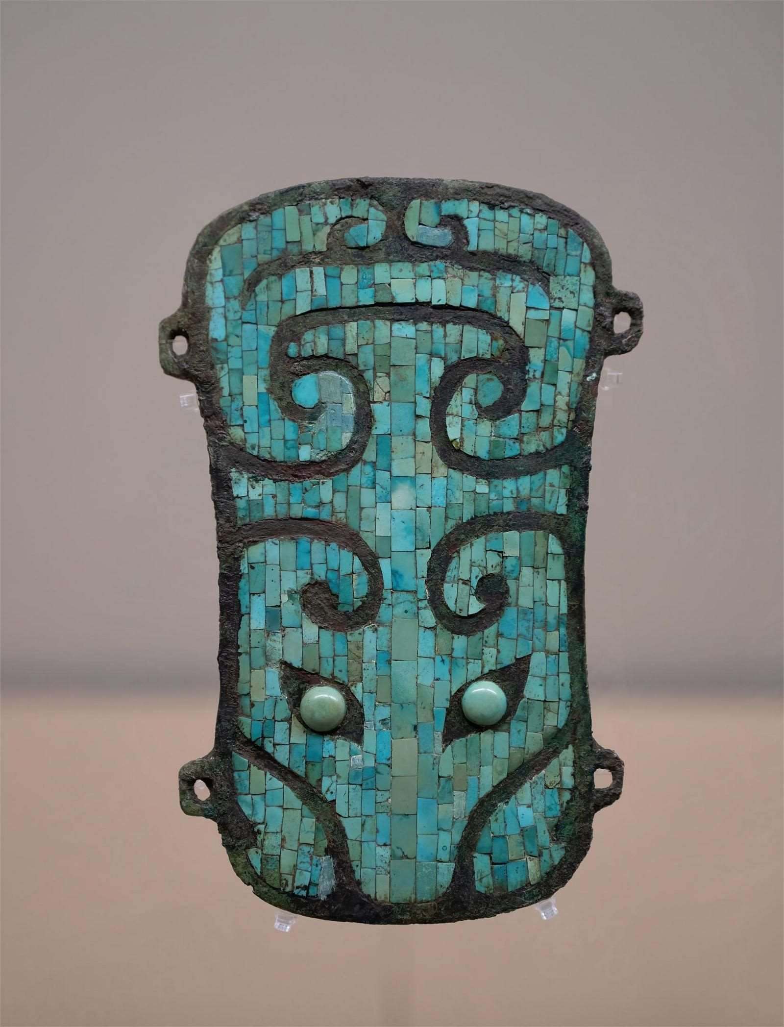 夏·鑲嵌綠松石獸面紋銅牌飾