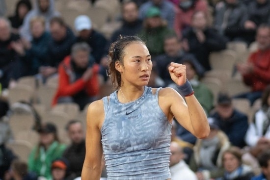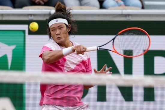 5月31日,張之臻在2024法國(guó)網(wǎng)球公開賽男單第三輪比賽中回球。新華社記者 孟鼎博 攝