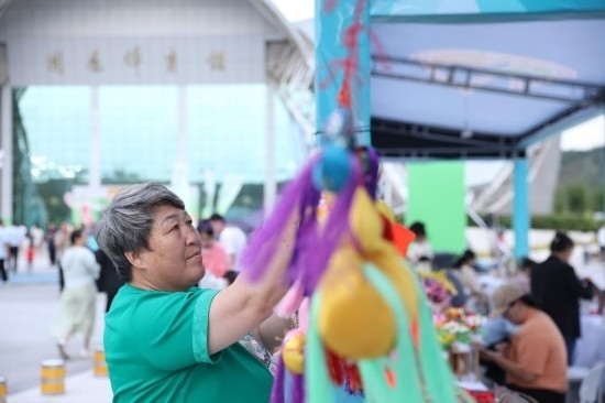 施滿義在攤位上向顧客介紹著刺繡、荷包、胸針等商品。作為自治區(qū)級(jí)非遺傳承人,施滿義非常明白客流量和曝光量對(duì)于非遺文創(chuàng)產(chǎn)品的重要性?!斑@里客流量大,像這個(gè)胸針,今天下午剛擺上沒(méi)多久已經(jīng)賣(mài)出180多個(gè)了。”