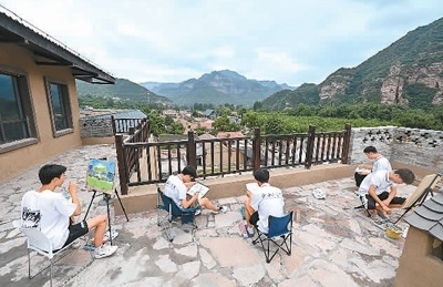 在位于山西省左權縣澤城村的中國北方國際寫生基地澤城驛站內,山西工學院的學生們在畫畫。新華社記者 楊晨光攝