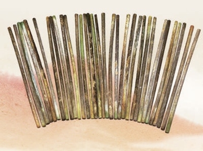戰(zhàn)國時(shí)期中山國中山成公陪葬墓出土的骨算籌。河北博物院供圖