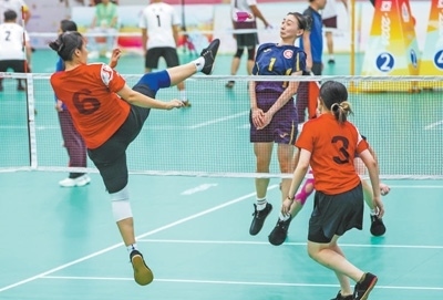 “好球!”“漂亮!”11月24日,海南三亞,第十二屆全國少數(shù)民族傳統(tǒng)體育運動會毽球項目比賽正酣。頭球、倒鉤球……激烈的回合、精彩的比拼,引來觀眾連連叫好。