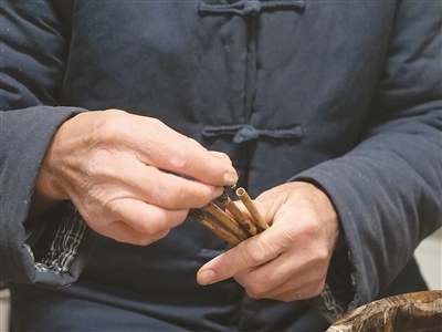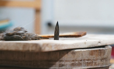 “無論是制作哪一類品種的宣筆,要能實(shí)現(xiàn)‘尖、齊、圓、健’均屬不易,需經(jīng)歷選料、水盆、制桿、裝套等多道工序、100多個(gè)環(huán)節(jié)?!币灾茥U為例,佘征軍介紹,工人需要先將筆桿磨平,再用工具在筆桿上挖出裝筆頭的洞,這套工藝沒有特定的參數(shù)可參考,全憑工人的手上感覺?!皩W(xué)徒入行,一般3到5年才能完整學(xué)會(huì)宣筆制造流程;要想做出一支優(yōu)秀的宣筆,至少10到12年的學(xué)習(xí)實(shí)踐;而要想學(xué)‘精’,需要一輩子的時(shí)間?!辟苷鬈娬f。