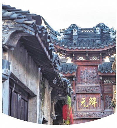 走過陸巷古老的青石街,沿街小店前擺滿了碧螺春茶葉、洞庭紅橘、枇杷膏等本地特產,耳畔響著吳儂軟語“枇杷膏”的聲聲叫賣,小吃店的飯菜香也在空氣中彌漫……向前走,穿過明代王鏊解元、會元、探花三座牌樓,折進一條青磚鋪砌的小巷,有著五進院落、兩座花園、雕梁畫棟的惠和堂就藏在深處。