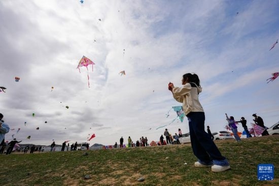 4月19日,人們在新疆烏魯木齊市水磨溝區(qū)風箏嘉年華活動現場放風箏。