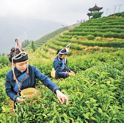 畬族居民在茶園采摘惠明茶。