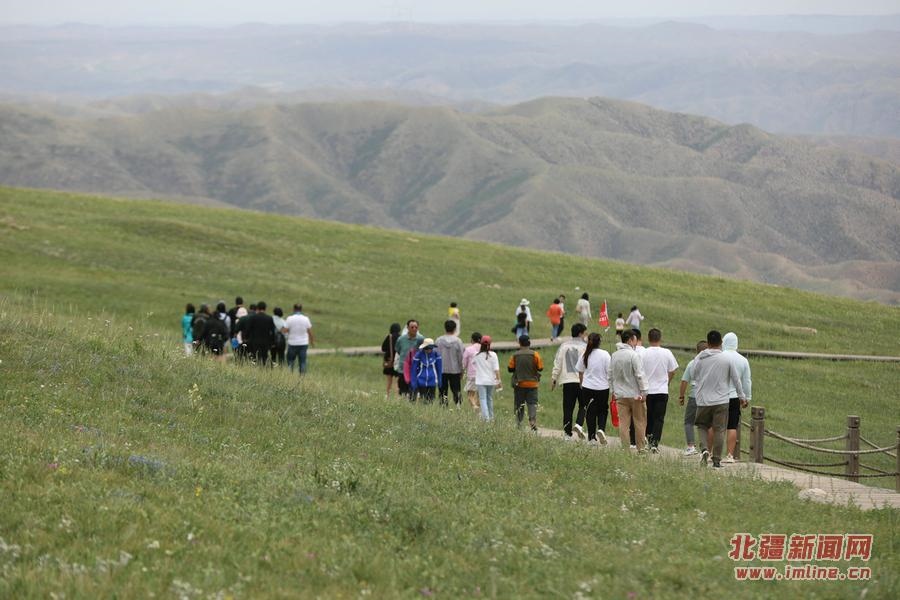 7月26日,游客在內(nèi)蒙古固陽縣春坤山景區(qū)游玩。