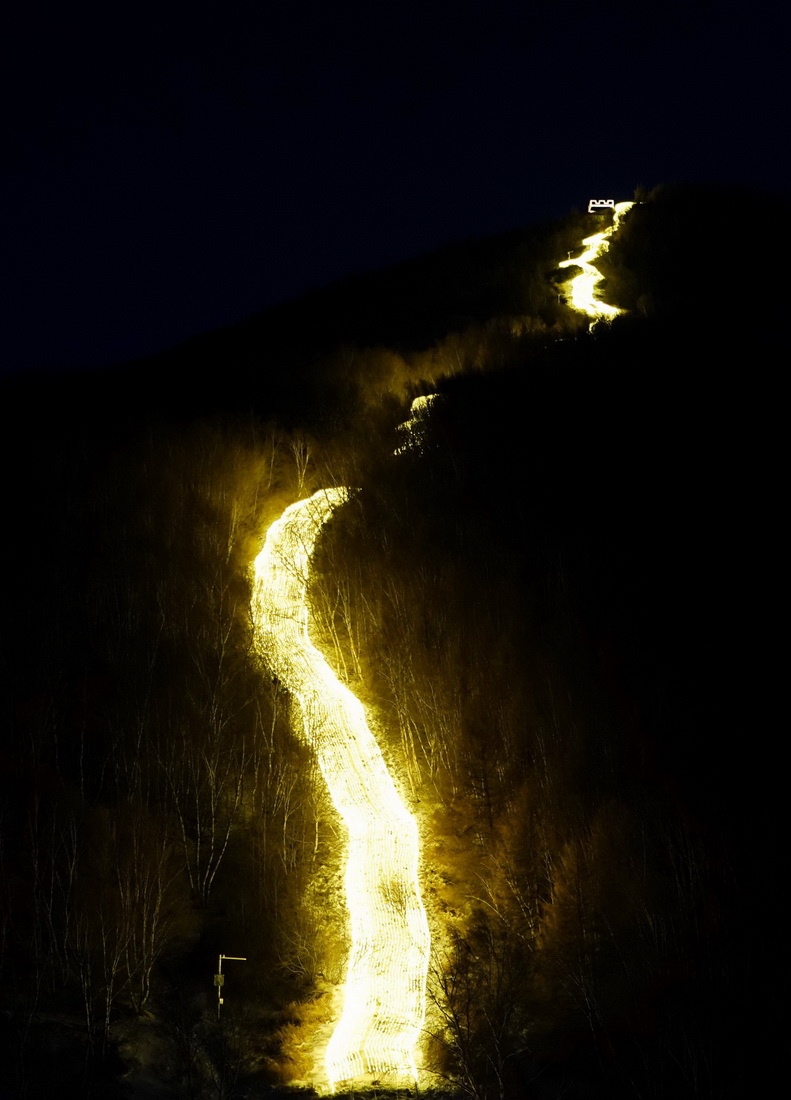 這是崇禮長(zhǎng)城景觀展示亮化工程現(xiàn)場(chǎng)的燈帶(12月30日攝)。新華社記者 楊世堯 攝